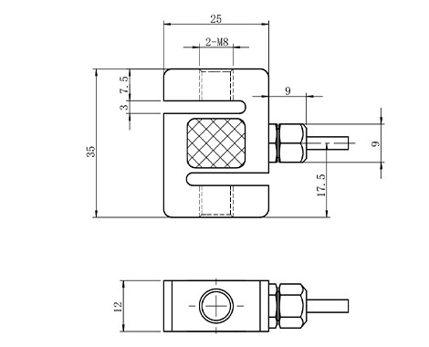输出灵敏度 2.0±10%mV/V 零点输出 ±0.05mV/V 蠕变 ≤0.05%F.S. 非线性 ≤0.05%F.S. 滞后 ≤0.05%F.S. 重复性 ≤0.05%F.S. 输入电阻 385±10Ω 输出电阻 350±5Ω 温度灵敏度漂移 0.05%F.S./10℃ 零点温度漂移 0.05%F.S./10℃ 绝缘电阻 ≥5000MΩ/100V(DC) 激励电压 5V 最大激励电压 15V 温度补偿范围 -10~60℃ 工作温度范围 -20~80℃ 安全过载 150%F.S. 极限过载 200%F.S. 电缆线尺寸 φ3X3000mm 产品重量 0.2kg 材料 不锈钢 产品尺寸图